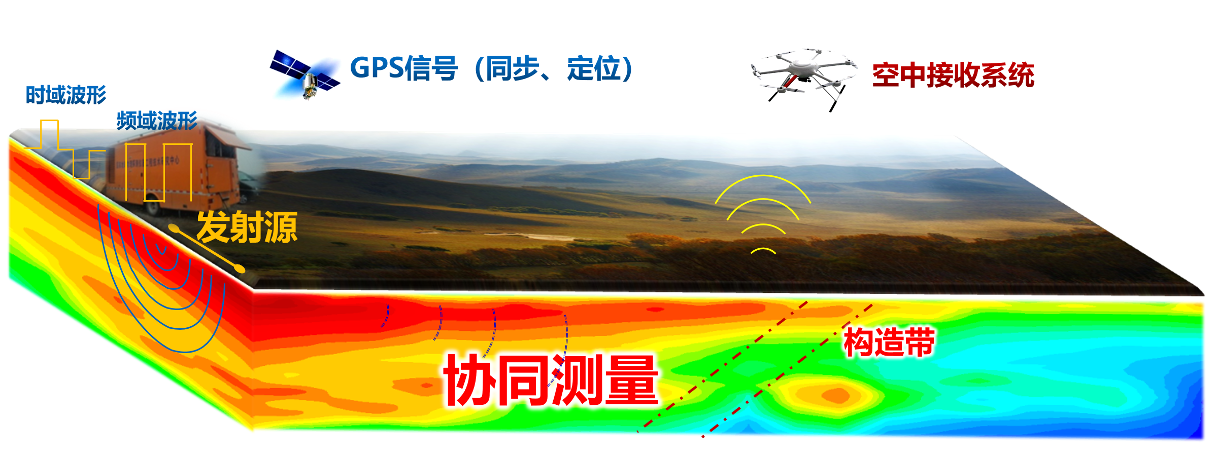 ◆地空協同電磁探地技術技術優勢●高效率:大功率電源車發射信號,無人機空...